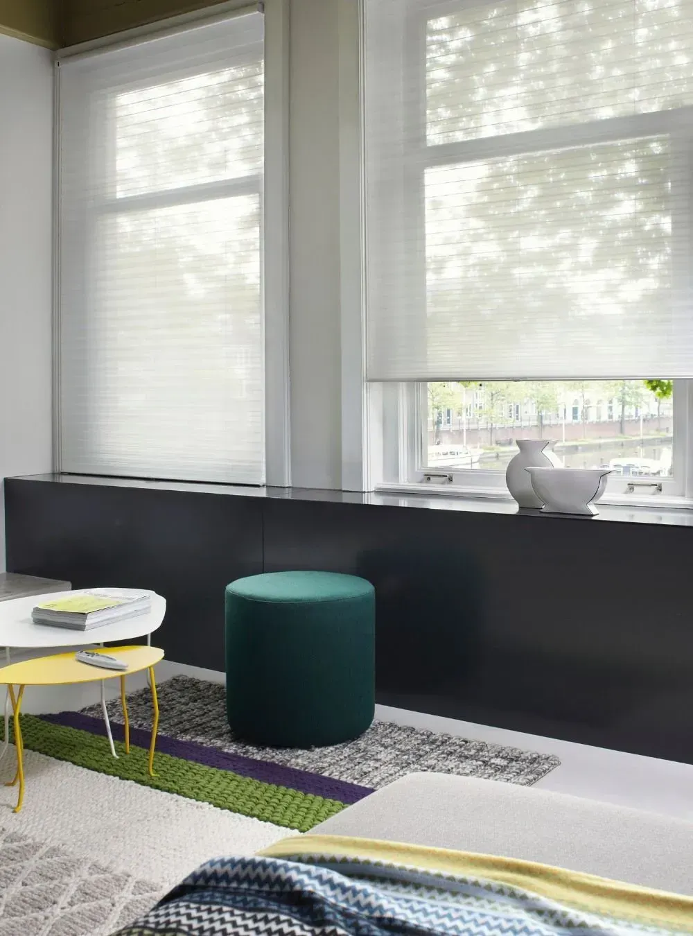 Whisper® Shades use a honeycomb-shaped design that traps air to improve insulation, helping keep your home warm in winter and cool in summer. They come in a range of fabric options, including light-filtering and blockout styles, with UV protection and day-to-night privacy built in for comfortable living all year round.
